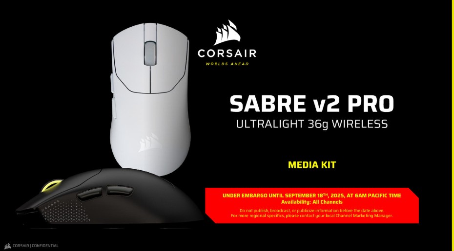MILPITAS, Kalifornia, 18 września 2025 r. — Firma CORSAIR (NASDAQ: CRSR) producent nagradzanych urządzeń peryferyjnych do gier, ogłosiła dziś premierę ultralekkiej bezprzewodowej myszy gamingowej SABRE v2 PRO, zaprojektowanej dla profesjonalnych graczy e-sportowych i graczy FPS, którzy wymagają każdej możliwej przewagi. SABRE v2 PRO to najlżejsza mysz CORSAIR w historii, waży zaledwie 36 g i łączy w sobie ultralekką konstrukcję z najnowocześniejszą technologią, taką jak częstotliwość raportowania 8000 Hz zarówno w trybie przewodowym, jak i bezprzewodowym. Mysz wyposażono w nowy czujnik CORSAIR MARKSMAN S, który zapewnia rozdzielczość 33 tys. DPI i najwyższą dokładność wśród wszystkich myszy CORSAIR, co przekłada się na dokładność przewyższającą oczekiwania profesjonalnych graczy.