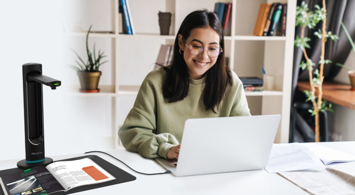IRIScan Desk 6 Business znacząco ułatwia także proces cyfryzacji dokumentów, które możemy potem przesyłać uczniom czy nauczycielom. Urządzenie obsługuje format A3, a czas potrzebny do zeskanowania jednej strony wynosi jedną sekundę. Dzięki zastosowanej technologii moment obrócenia kartki podczas skanowania wykrywa oprogramowanie, a proces można uruchamiać w interwałach lub poprzez dołączone do zestawu sprzętowe przyciski – biurkowy oraz pedał do ustawienia pod stopą.