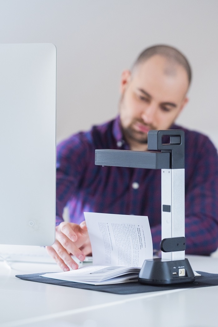 Omawiane urządzenie w dużej mierze korzysta z dobrodziejstw sztucznej inteligencji. Skaner jest w stanie wykrywać strony/okładki książek i może reagować na zmianę kartek. Produkt posiada również funkcję automatycznego spłaszczania stron, uzupełniania rogów czy nawet programowego usuwania palców przytrzymujących kartki.