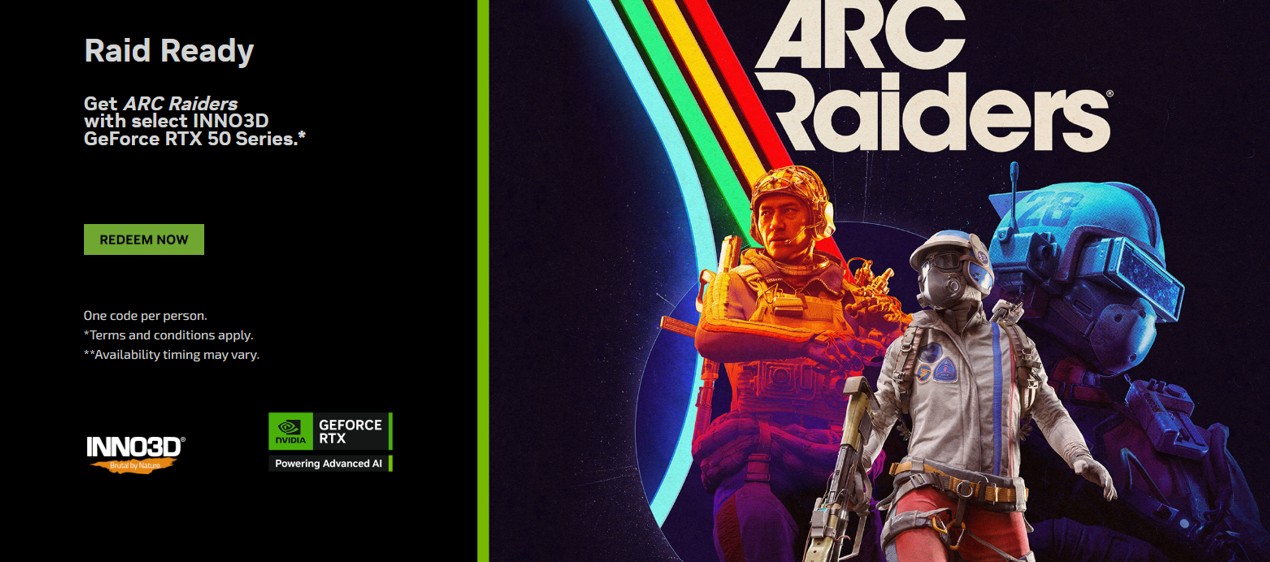 Tylko do 4 listopada 2025 roku (lub do wyczerpania zapasów) masz szansę otrzymać grę ARC Raiders Deluxe Edition całkowicie za darmo przy zakupie wybranych kart graficznych INNO3D. To ostatnie dni, by dołączyć do grona Raiderów bez dodatkowych kosztów, zbrojąc się w potężny sprzęt przygotowany na wyzwania gamingu przyszłości.