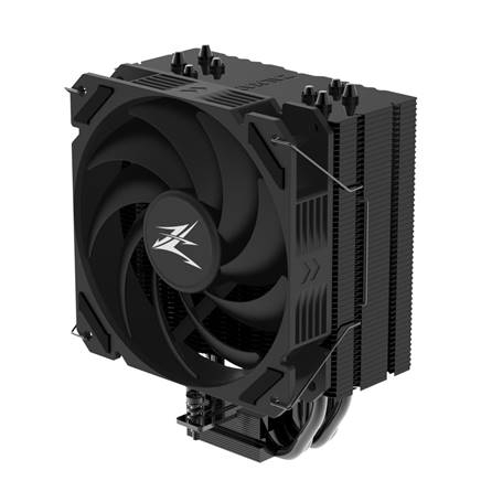 Producent chwali się, że jego najnowszy produkt to nie tylko gustowny radiator i przewody cieplne. Duże znaczenie ma tutaj załączony wentylator Vortex Breaker Blade, który ma zapewniać minimalny opór przepływu powietrza. Generowany hałas rotora powinien utrzymywać się na poziomie 28 dB(A) ±10%, a jego maksymalna prędkość działania wynosi 1800 RPM ±10%. Warto dodać, że wentylator oferuje możliwość regulowania pracy za pomocą PWM.