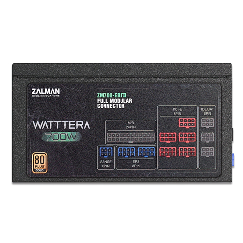Zalman WATTTERA ZM700-EBTII to zasilacz o mocy 700 W. Jego przeciętna sprawność, poświadczona certyfikatem 80 Plus Gold, powinna wynosić około 92%. Solidne osiągi uzyskano m.in. dzięki wysokiej jakości komponentom. Producent podkreśla zastosowanie wyłącznie stałych, japońskich kondensatorów, które mają wytrzymywać temperatury rzędu 105 stopni Celsjusza. Zastosowano też konwertery DC-DC i filtry przeciwzakłóceniowe EMI czy aktywny układ PFC.